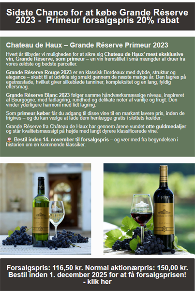 En helt særlig jubilæums-vin, for første gang sammensat af flere årgange af Chateau de Haux. - læs om tilbuddet længere nede!